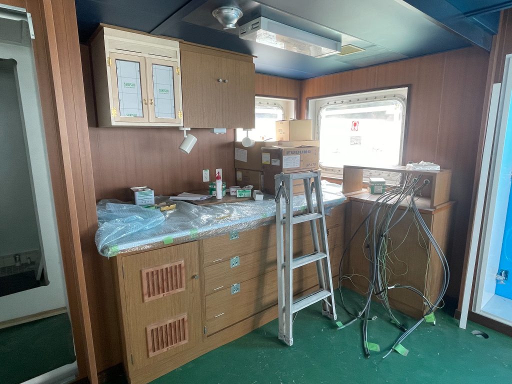 船橋には神棚や海図台などの取り付けが進んでおりました。