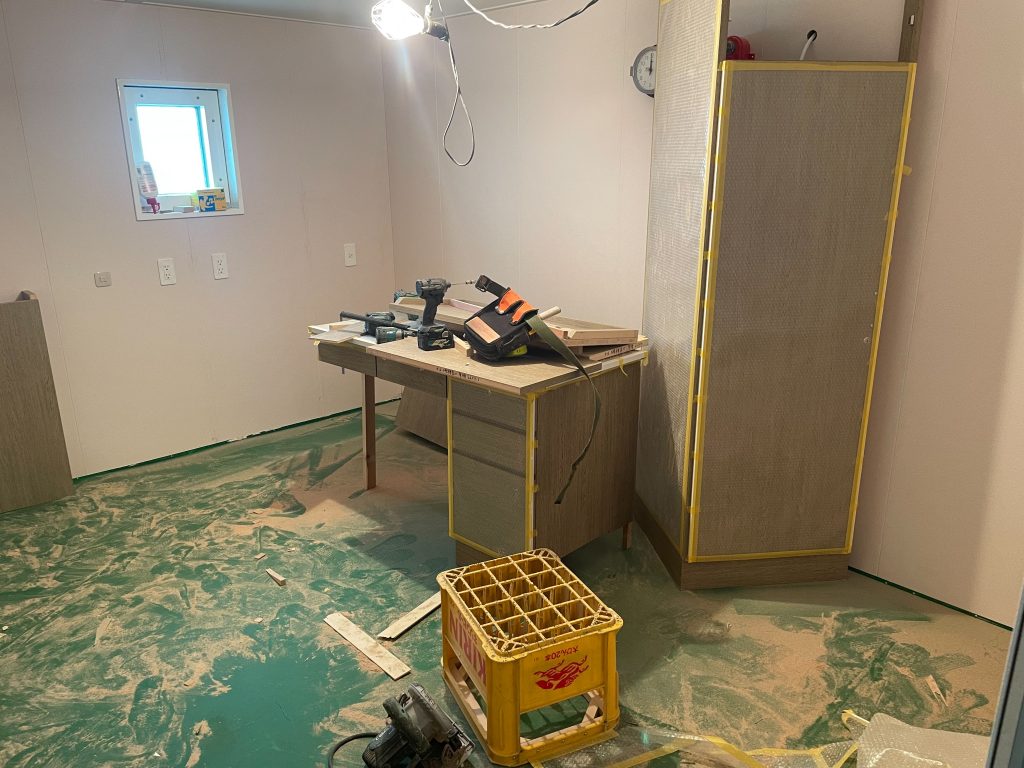ベッドと机が取り付けられ居室になってきました。